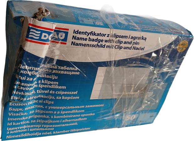 Névkitűző, csíptetővel és tűvel, 88x54 mm, DONAU