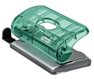 Lyukasztó, mini, kétlyukú, 10 lap, RAPID, "Colour`Breeze", zöld