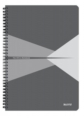 Spirálfüzet, A4, kockás, 90 lap, PP borító, LEITZ "Office", szürke