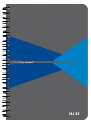 Spirálfüzet, A5, vonalas, 90 lap, PP borító, LEITZ "Office", szürke-kék