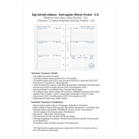 Kalendárium betét, tervező, heti, pocket (S) méret, FILOFAX, 2026