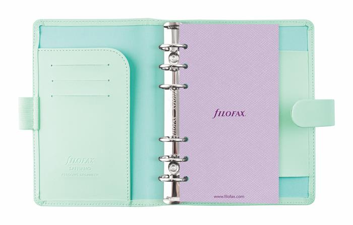 Kalendárium, gyűrűs, betétlapokkal, personal méret, FILOFAX "Saffiano", menta