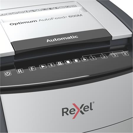 Iratmegsemmisítő, mikrokonfetti, 600 lap, REXEL "Optimum AutoFeed+ 600M"