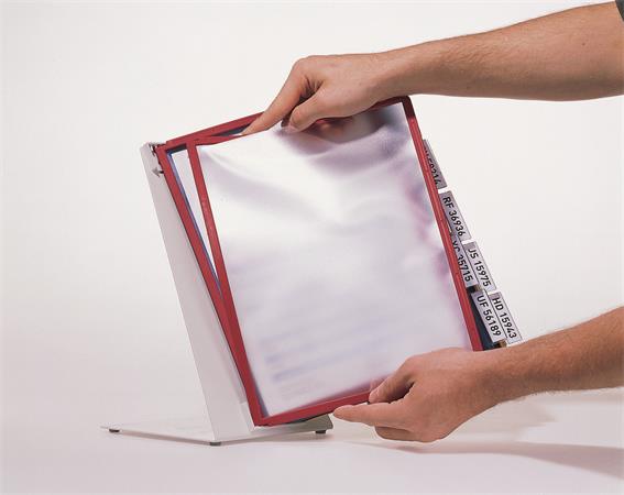 -fém tartó-10 db A4 méretű SHERPA® panellel-polipropilén panelek színes kerettel és tükröződésmentes, fénymásolható fóliával-vegyes színben, mely lehetővé teszi a dokumentumok színregiszteres tárolását-az indexfülek könnyen feliratozhatók-strapabíró és stabil-5 év garancia-külső méret: 390x405x370 mm (szé x ma x ho)