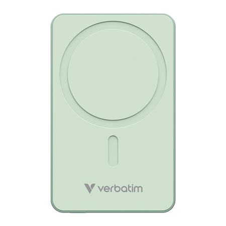 Power bank, mágneses (vezeték nélküli), 10.000mAh, VERBATIM "Charge n Go Essentials", zöld