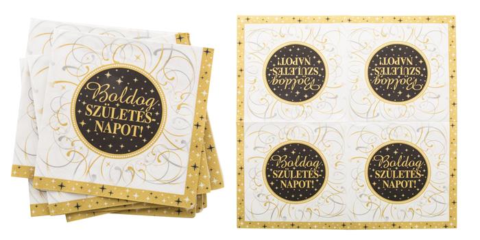 Szalvéta, 33x33 cm, "Boldog Születésnapot", elegáns