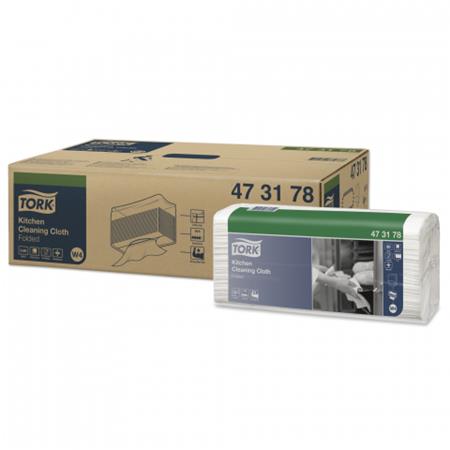 Tisztítókendő, konyhai, hajtogatott, 1 rétegű, W4 rendszer,TORK, fehér