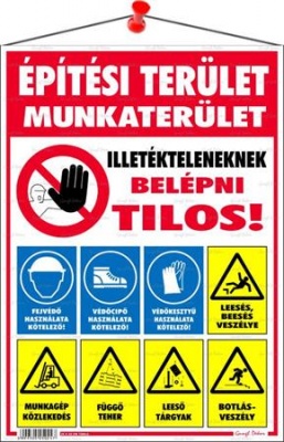 Építési terület! információs tábla