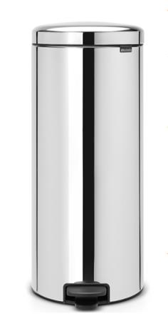 Inox, fém színű, gyors pedálos működtetésű tűzálló szemetes.