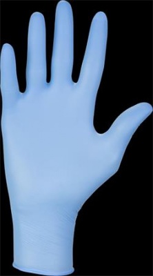 Hagyományos nitril kesztyű, textúrált ujjvégekkel.